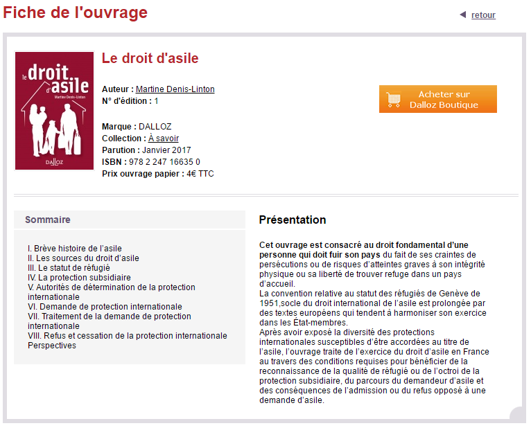Chaque création / vérification de notice s’est faite à partir de la « fiche de l’ouvrage » Dalloz + affichage / consultation du document électronique.